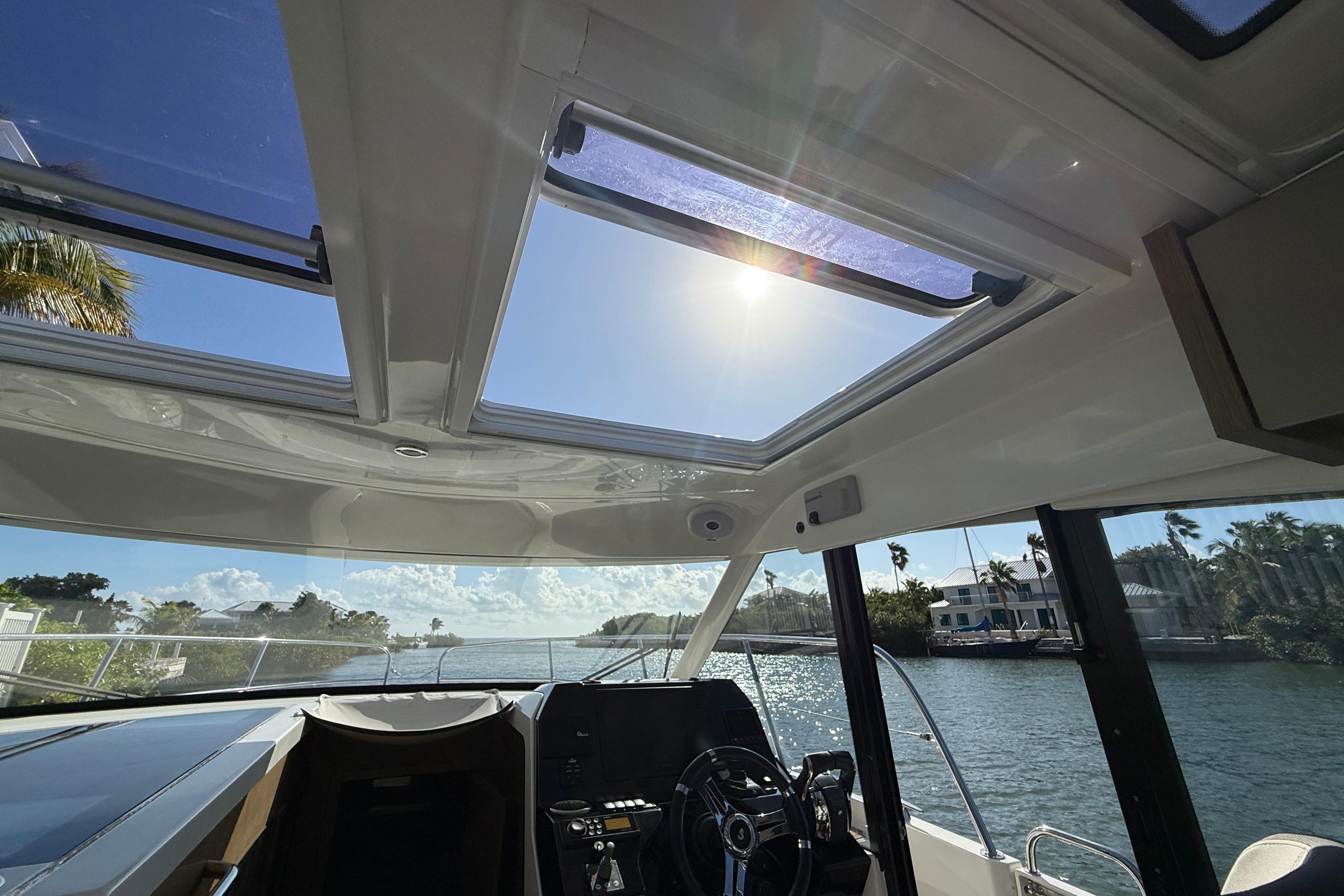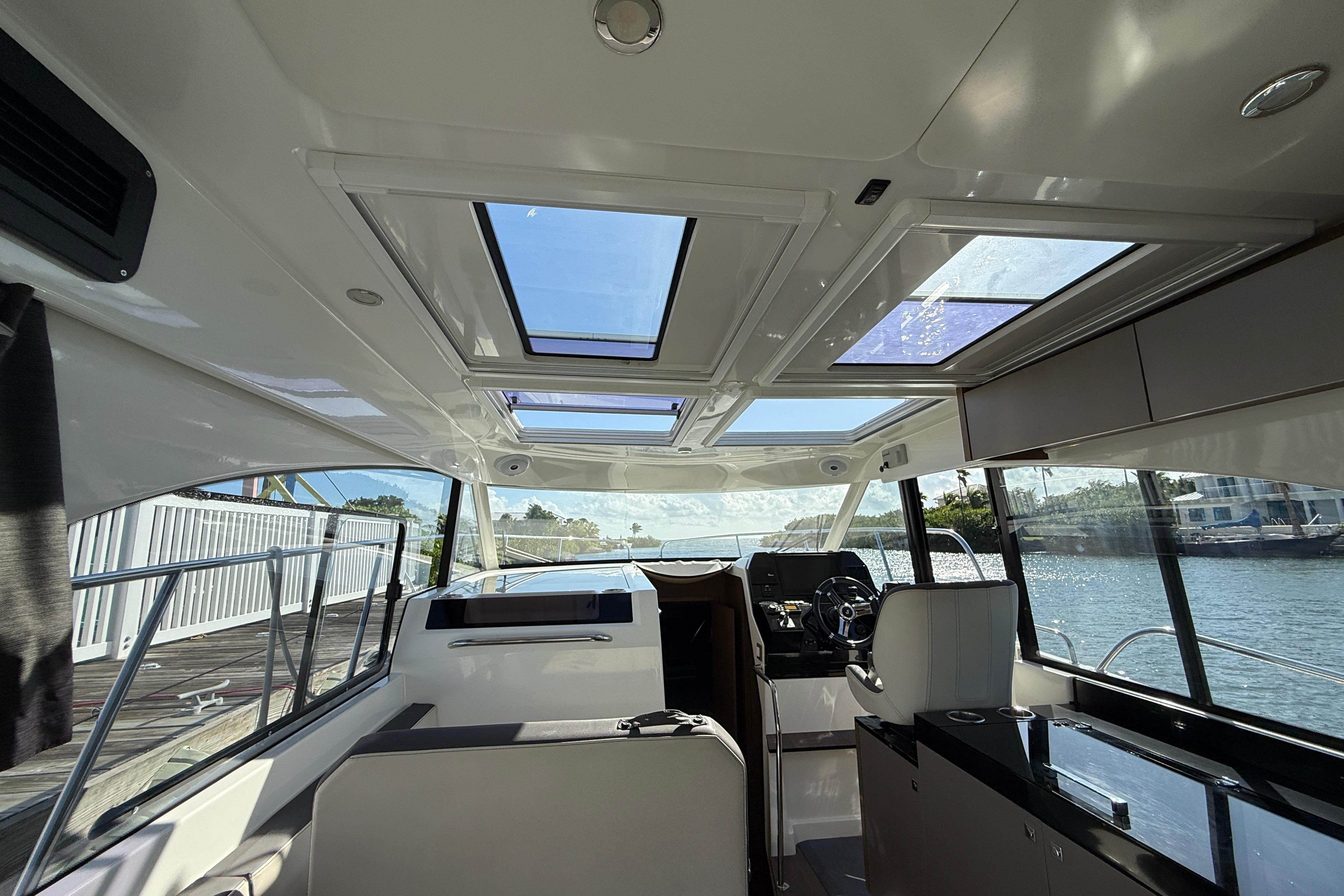 Light and cruising comfort characterize this large weekender. The double master cabin with en-suite shower room is a well above the usual standards. The aft cabin is full beam and has three berths. The Antares 11 has a convertible saloon and can sleep up to 7 people in excellent conditions. The extensive glazing in the wheelhouse provide stunning all-around views from the salon and cockpit.
